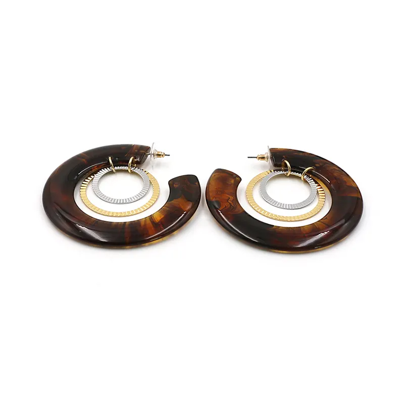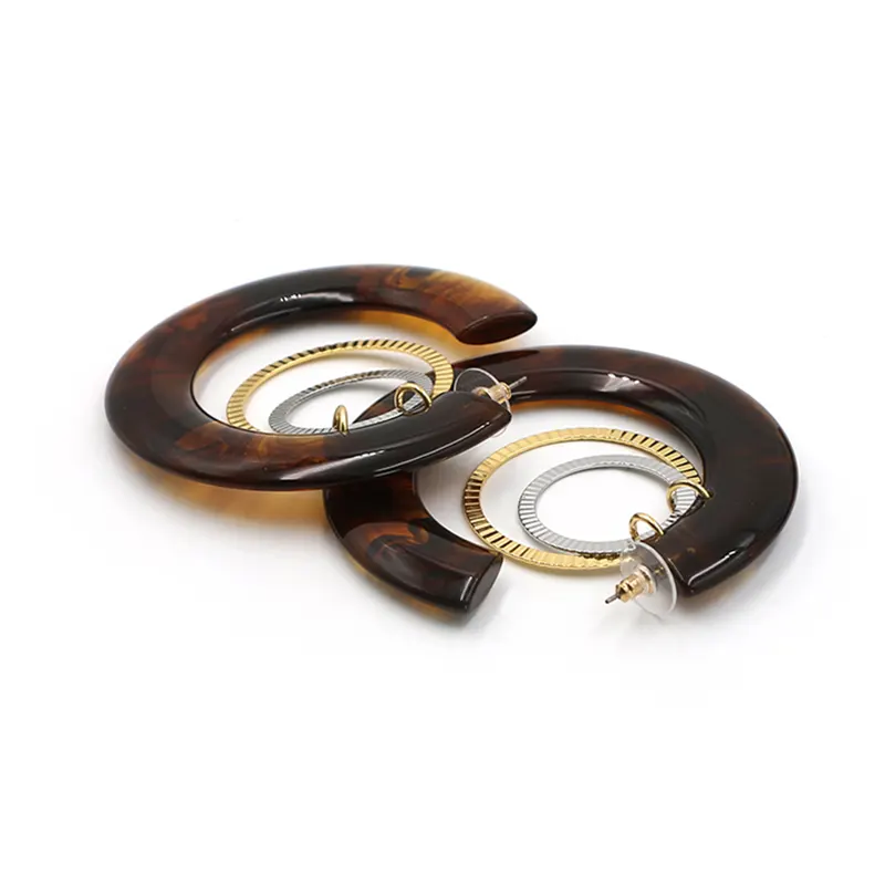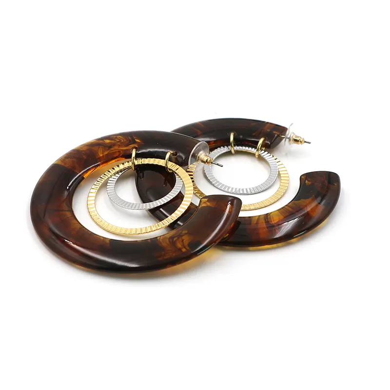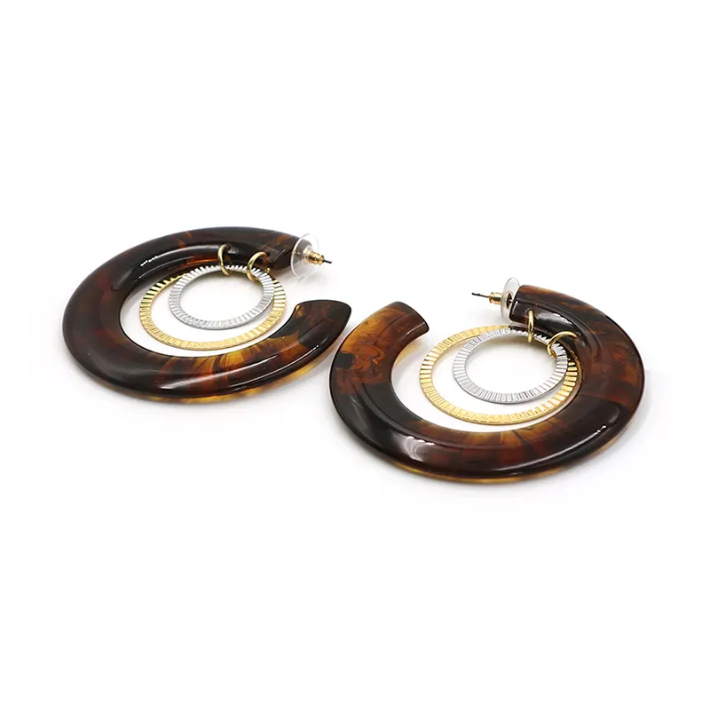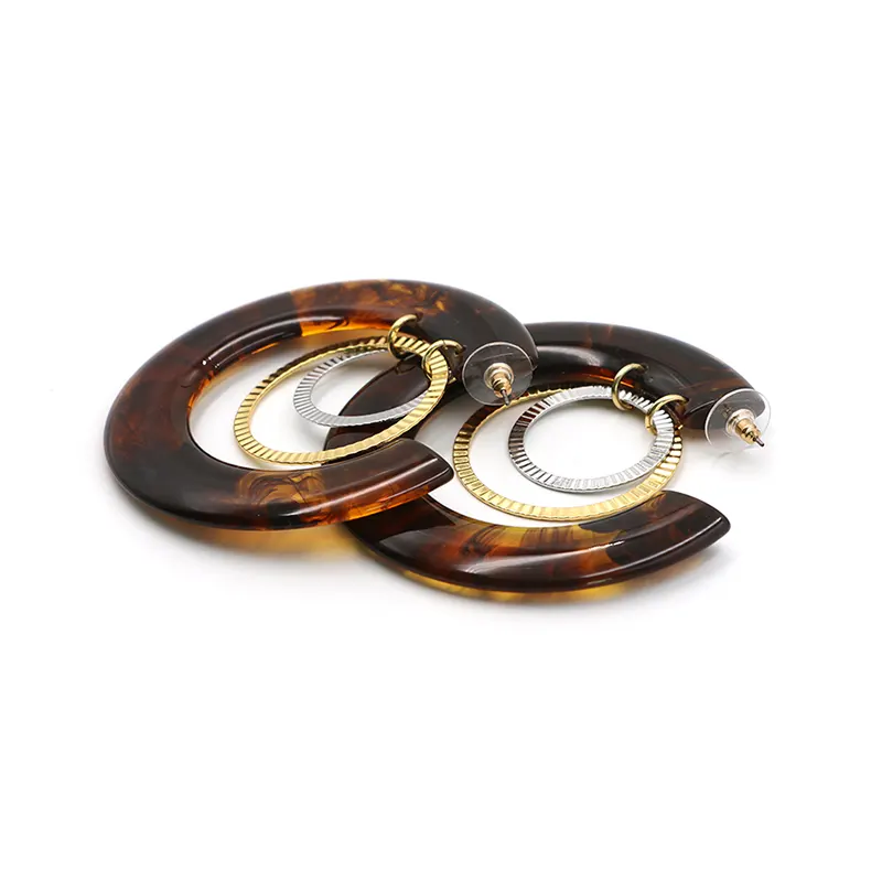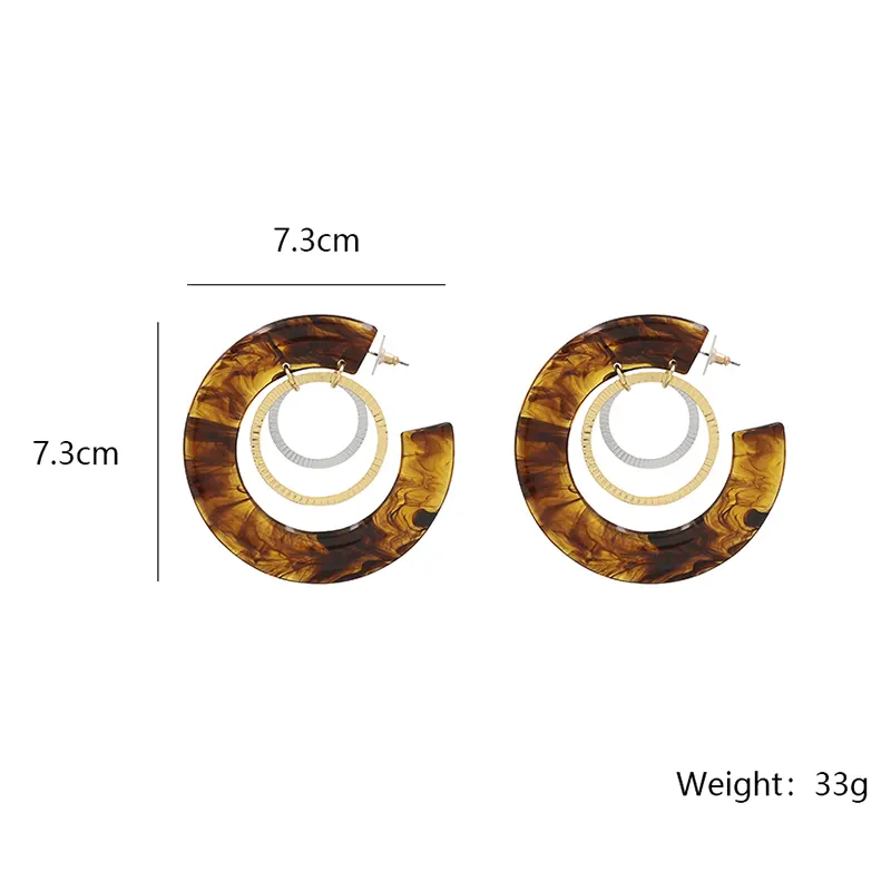 アンバー樹脂C字型のイヤリングの内層は、金属製のリングと巧妙に一致しており、金と銀の衝突が層を追加します。直径7.3cmのサイズは、顔の線を変更するのにぴったりです。各ピースはわずか16.5gで、軽くて負担がかかりません。長い間着てから疲れを感じることはありません。