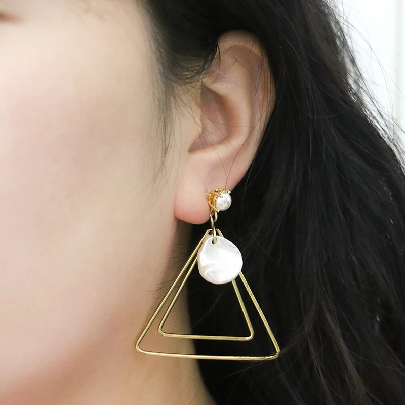 金メッキの真鍮の三角形のパールイヤリングは、友人や家族に最適な贈り物です。また、エレガントでモダンなジュエリーを高く評価する人のためのコレクションにもなります。それは人々が昼から夜に簡単に移行し、あなたのイブニングドレスに優雅さのタッチを追加することを可能にします。