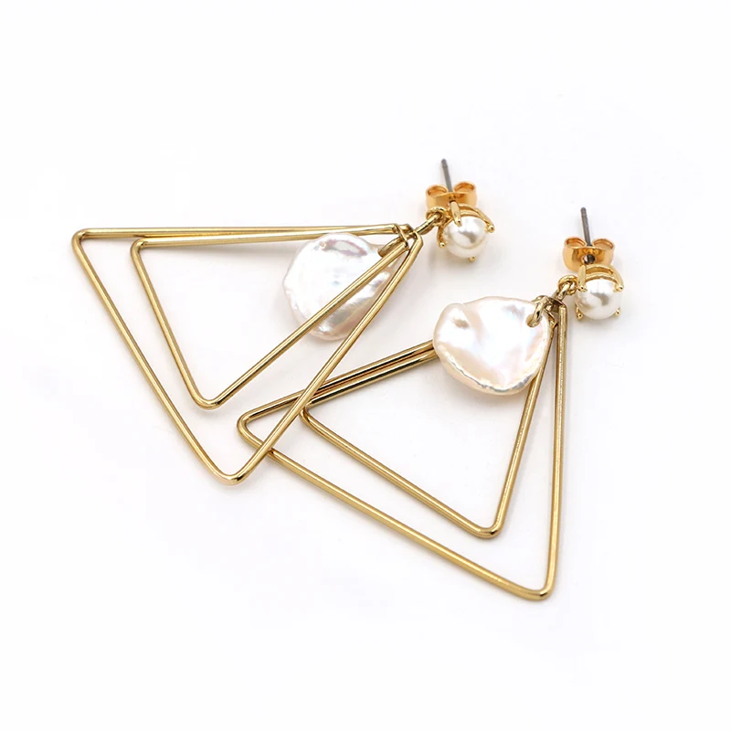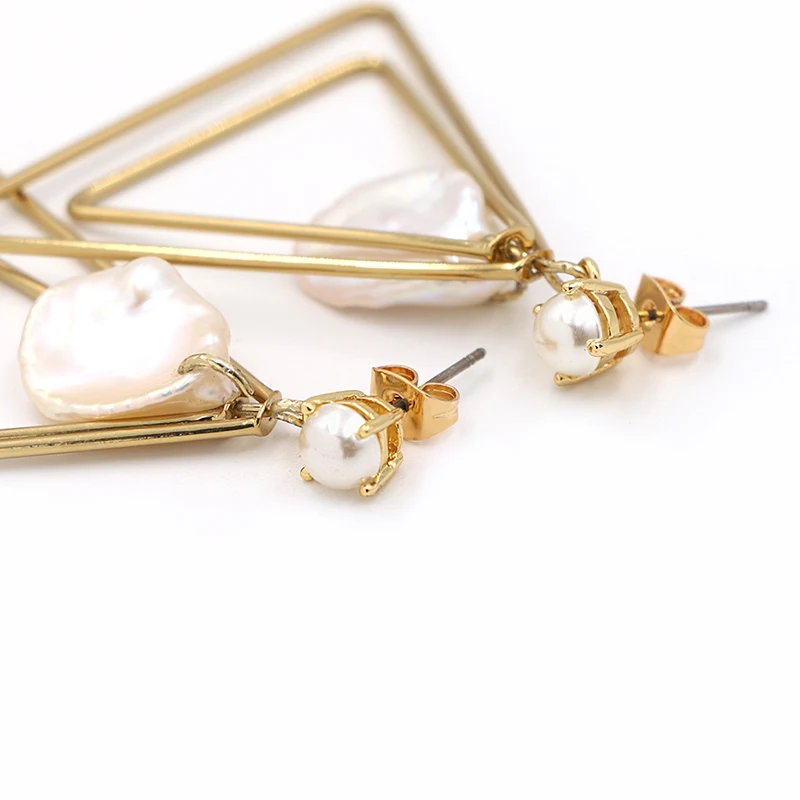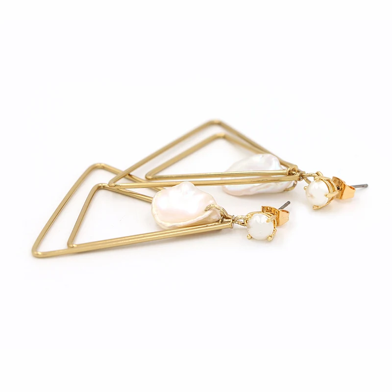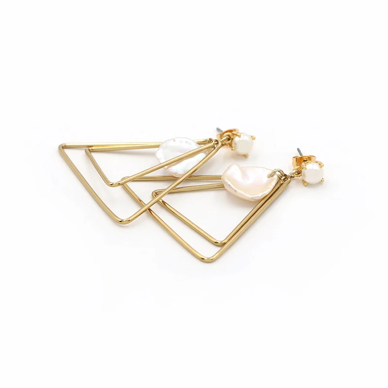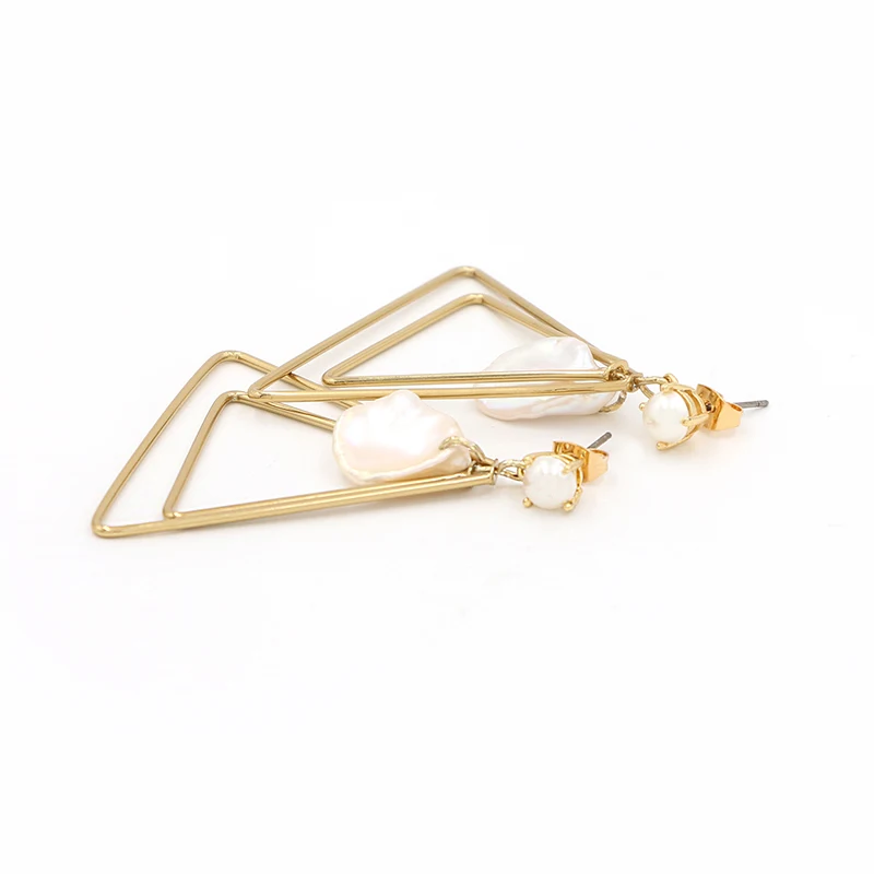金 メッキ真鍮の三角形の真珠のイヤリング